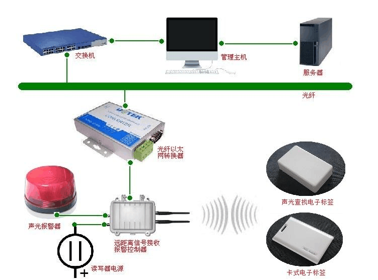 我們會在每一輛需要定位監(jiān)控的物資上面安裝一張半有源RFID的低頻激活電子標(biāo)簽或者安裝一只聲光查找報(bào)警標(biāo)簽,該標(biāo)簽具有唯一的編碼, 每一張標(biāo)簽和對應(yīng)的物資初始化綁定,該標(biāo)簽平時(shí)休眠不向外界發(fā)信號,只有它處于觸發(fā)信號范圍內(nèi)被低頻激活定位器喚醒后才向外界發(fā)送信號; 其次,我們在倉庫的出入口及主要過道安裝有低頻激活定位器,用于喚醒標(biāo)簽并定位標(biāo)簽位置,喚醒標(biāo)簽的距離在0.5-8米; 同時(shí),在倉庫不同的地方,安裝一些有源RFID遠(yuǎn)距離讀寫器,用于采集低頻激活電子標(biāo)簽被激活后發(fā)出的信息 (包括電子標(biāo)簽本身的ID號,低頻激活天線的地址碼,信號強(qiáng)度RSSI值及標(biāo)簽電池電量狀態(tài)燈信息),讀寫器采集到數(shù)據(jù)后, 通過各種傳輸方式,將信息上傳給電腦管理中心,管理中心有一套我們專門針對倉庫物資定位調(diào)度管理的軟件系統(tǒng), 會對各種數(shù)據(jù)進(jìn)行分析,處理,存儲,判斷等,從而完成整個(gè)倉庫物資定位調(diào)度管理系統(tǒng)功能;再者,我們還可以通過軟件, 讓讀寫器呼叫某物資對應(yīng)的標(biāo)簽,可以讓標(biāo)簽發(fā)出聲音和光,用于查找相關(guān)物資;除此,我們倉庫門禁的監(jiān)控設(shè)備,可以有防盜報(bào)警功能。